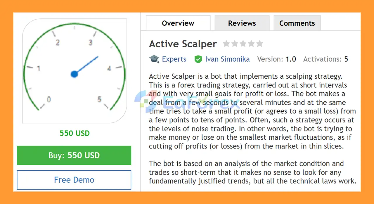 Active Scalper EA MT4 is an automated forex trading robot designed for the MetaTrader 4 platform. It uses a fast scalping strategy that executes trades within seconds to a few minutes, targeting small price movements in the market. Instead of waiting for large trends, the EA focuses on market noise and micro-fluctuations, capturing small profits or limiting losses quickly. By combining market condition analysis with precise technical rules, Active Scalper EA aims to take advantage of short-term opportunities while maintaining strict risk management parameters.