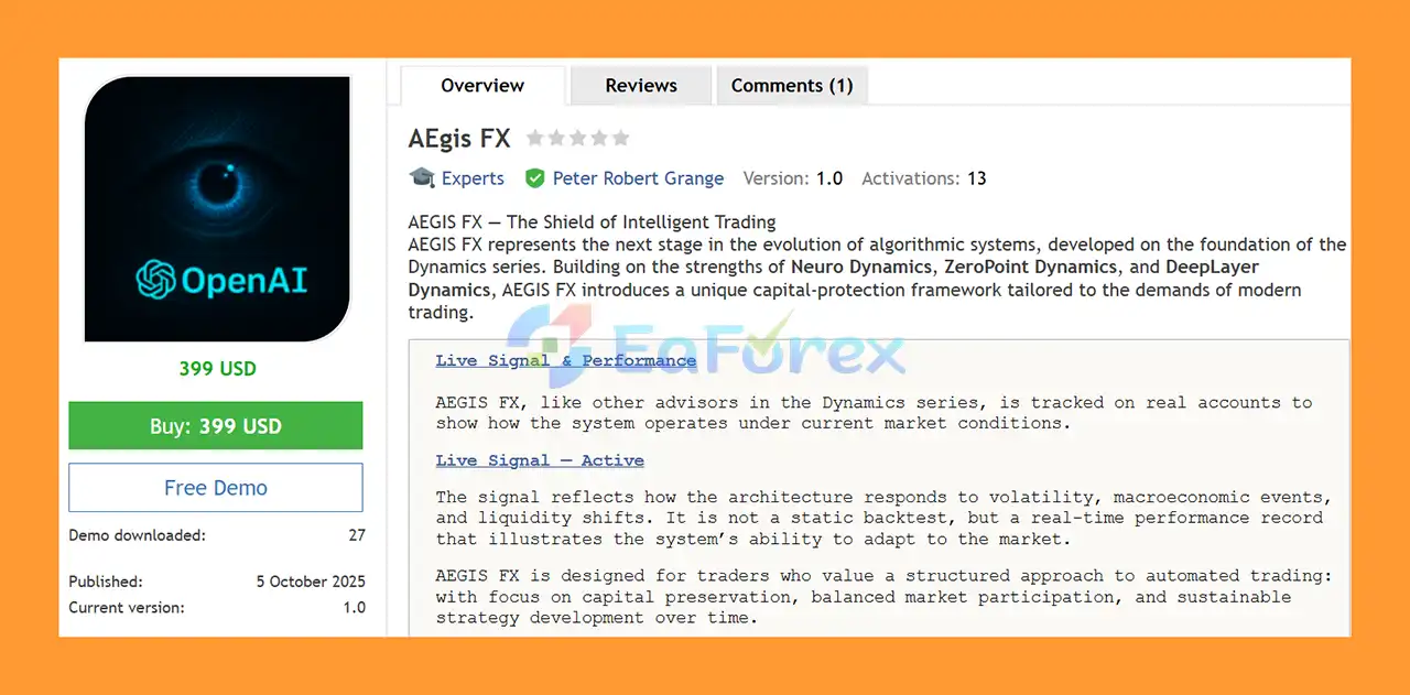 • Notable Products: AEgis FX, AI Neuro Dynamics MT5, AI ZeroPoint Dynamics MT5 and other advisors.