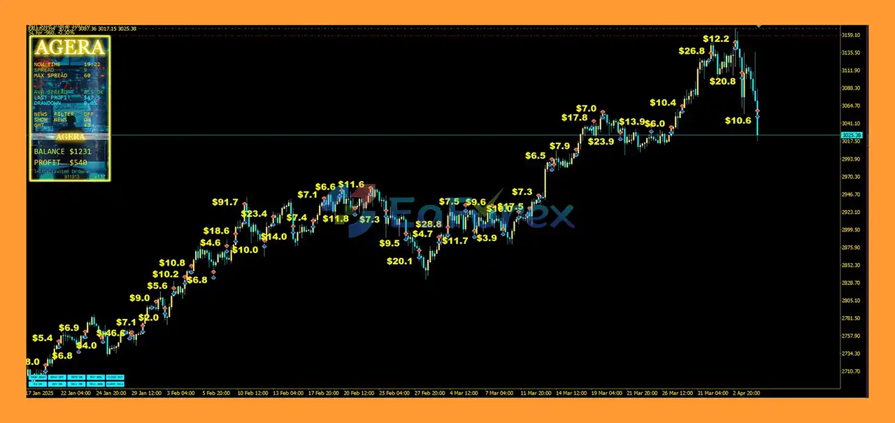 In summary, Agera EA MT5 is a powerful automated trading solution built specifically for XAUUSD (Gold) on the MetaTrader 5 platform. By utilizing a structured support and resistance breakout strategy, combined with volatility and momentum indicators such as ATR and RSI, the EA aims to capture strong gold price movements with disciplined risk control. With features like dual take-profit targets, adaptive broker compatibility, news protection, and fully automated trade management, Agera EA MT5 offers traders a reliable and structured approach to automated gold trading, making it a solid choice for those seeking consistent performance in the volatile gold market.