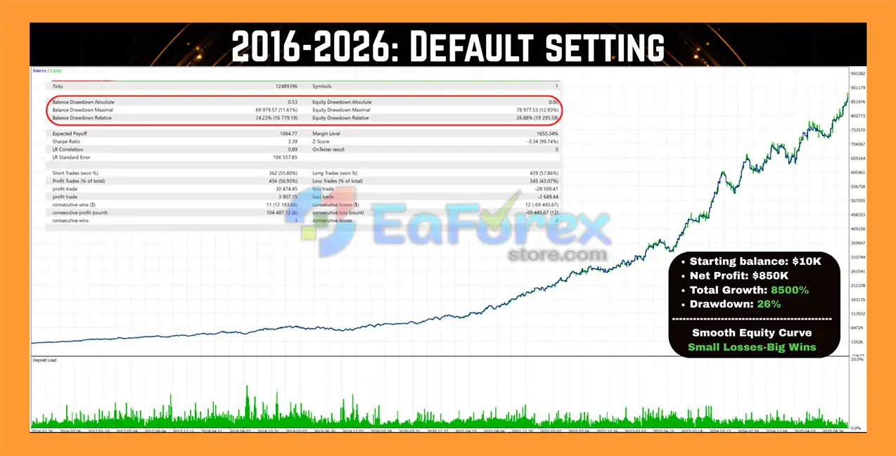 Unlike many EAs, it prioritizes capital survival over high win rates or aggressive growth. It only trades high-quality breakout setups with strict filtering, ensuring disciplined and stable long-term performance.