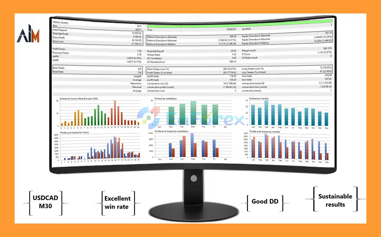 Ai Corporal EA MT5 works on major currency pairs, including AUDUSD and USDCAD, primarily on the M30 timeframe. It is compatible with any account type, broker, and different capital sizes.
