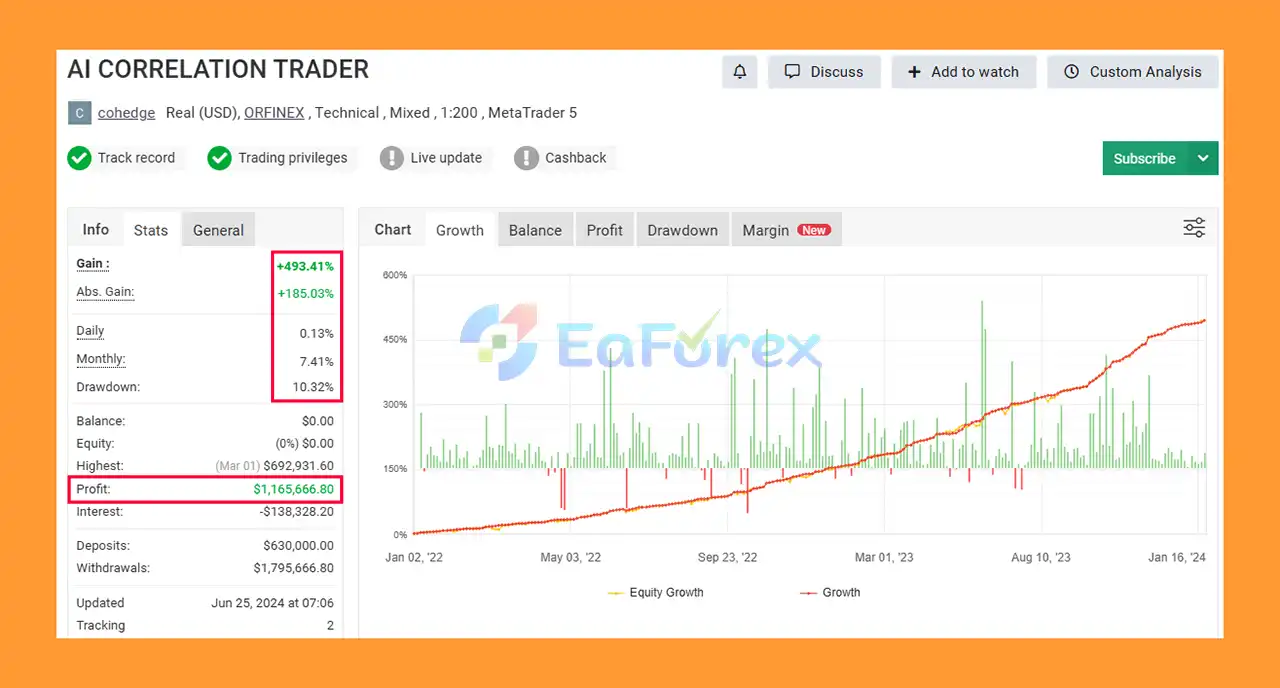AI Correlation 2024 EA Myfxbook Result