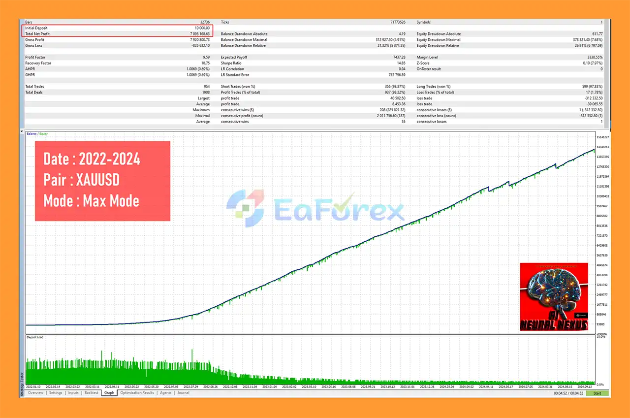 AI Neural Nexus EA MT5 Backtest Results with Gold