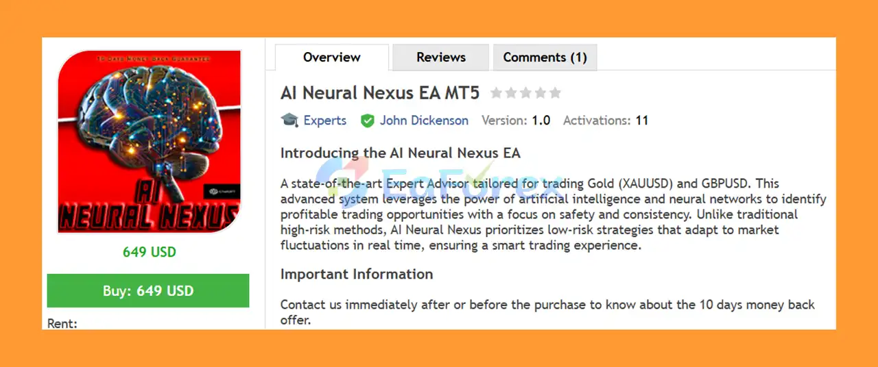 • Notable Products: AI Neural Nexus EA MT5, AI Neural Nexus EA MT4 and other advisors