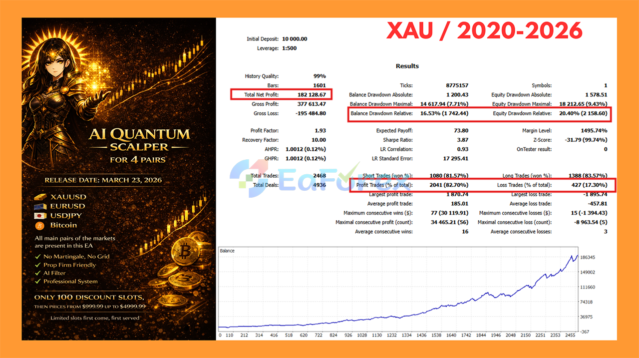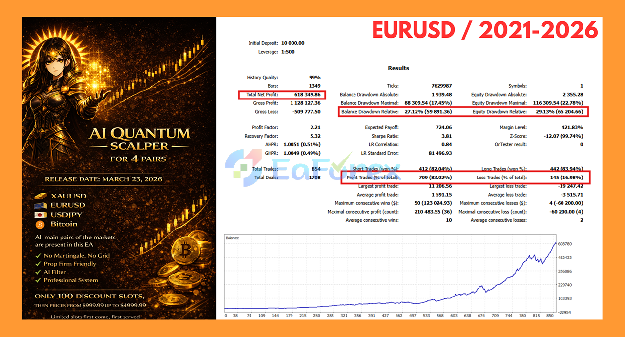 AI Quantum Scalper EA MT5 Backtests