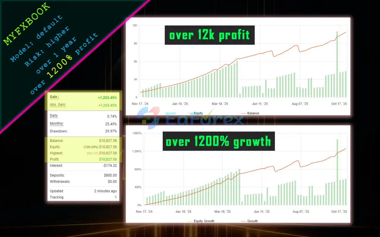 It combines HFT precision, low-risk exposure, and 22-hour daily operation for stable, sustainable profits — making it perfect for both prop firm and retail traders.