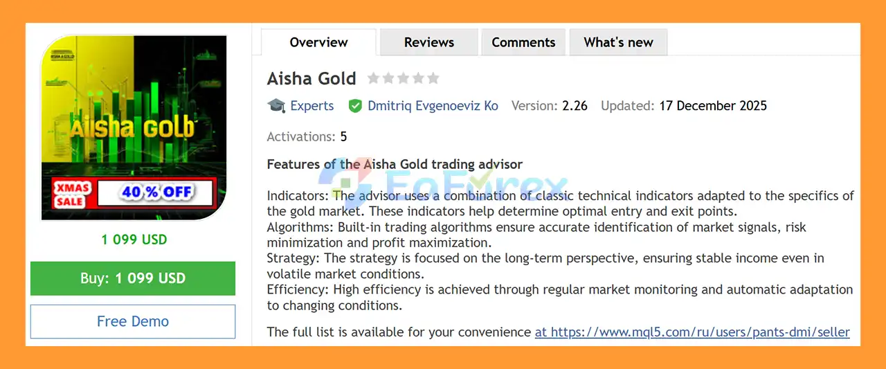 Aisha Gold EA MT4 Overview