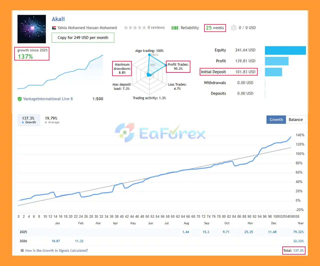 7. What are the verified performance results of Akali EA MT5?
