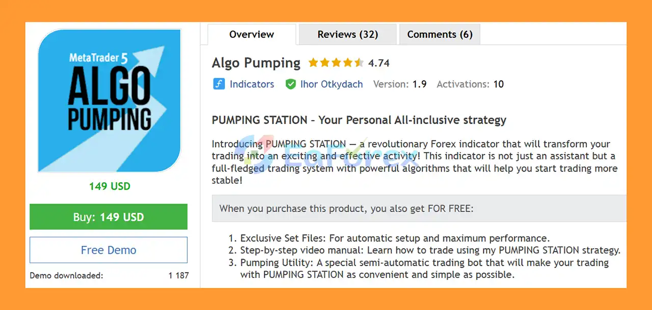 • Notable Products: Algo Pumping EA MT5, One Man Army, Divergence Bomber, Swing Master EA, Scalper Investor, Enslaver and other advisors.