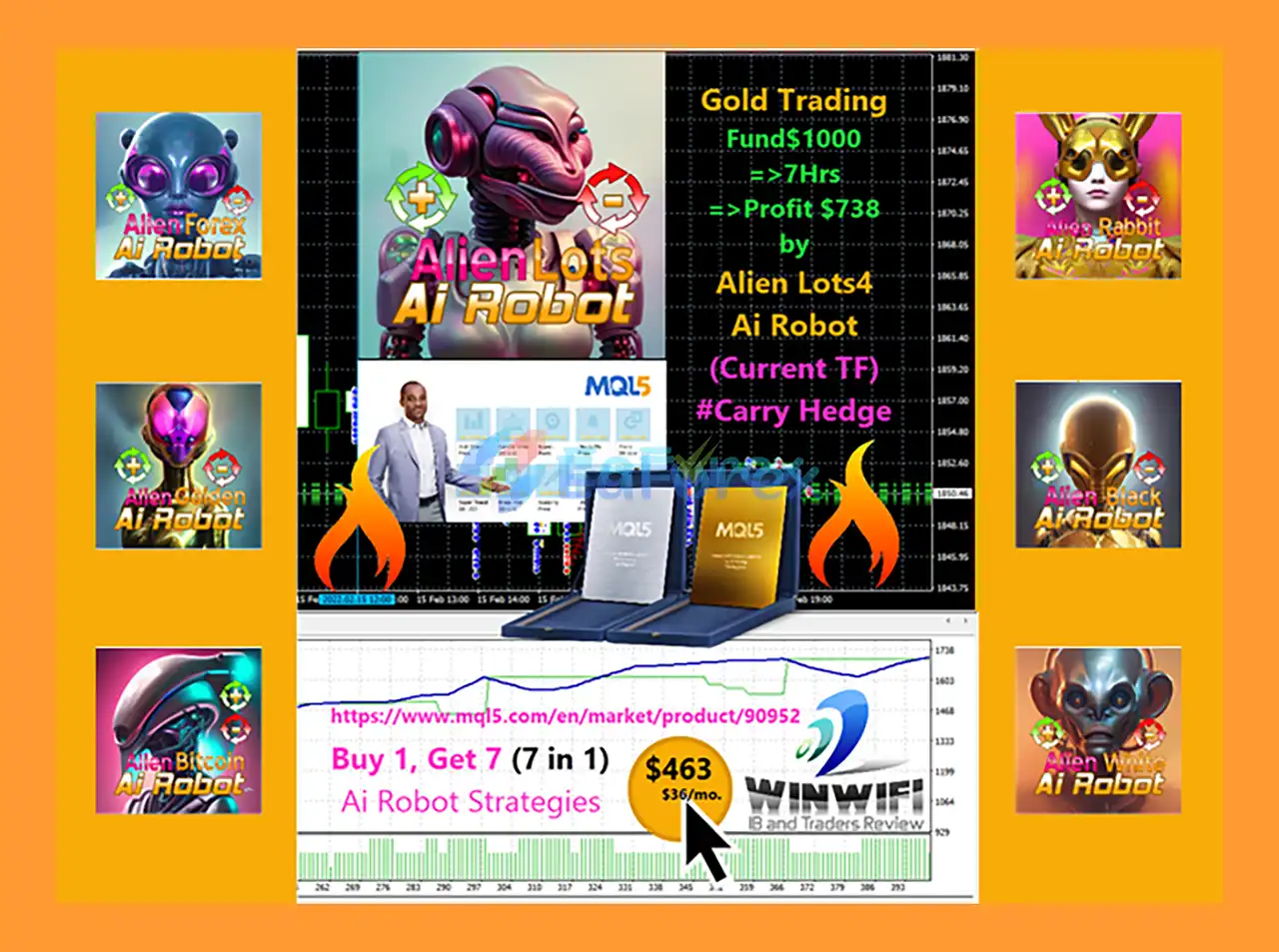 Alien Lots AI Robot EA MT4 is an automated trading EA for XAUUSD and all other currency pairs, with smart martingale strategies to deliver long-term profits.