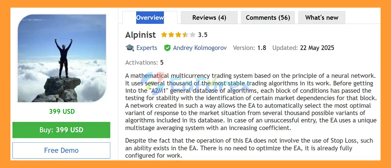 - Flagship Product: Alpinist EA MT4Â is rated as the best performing product of the year.