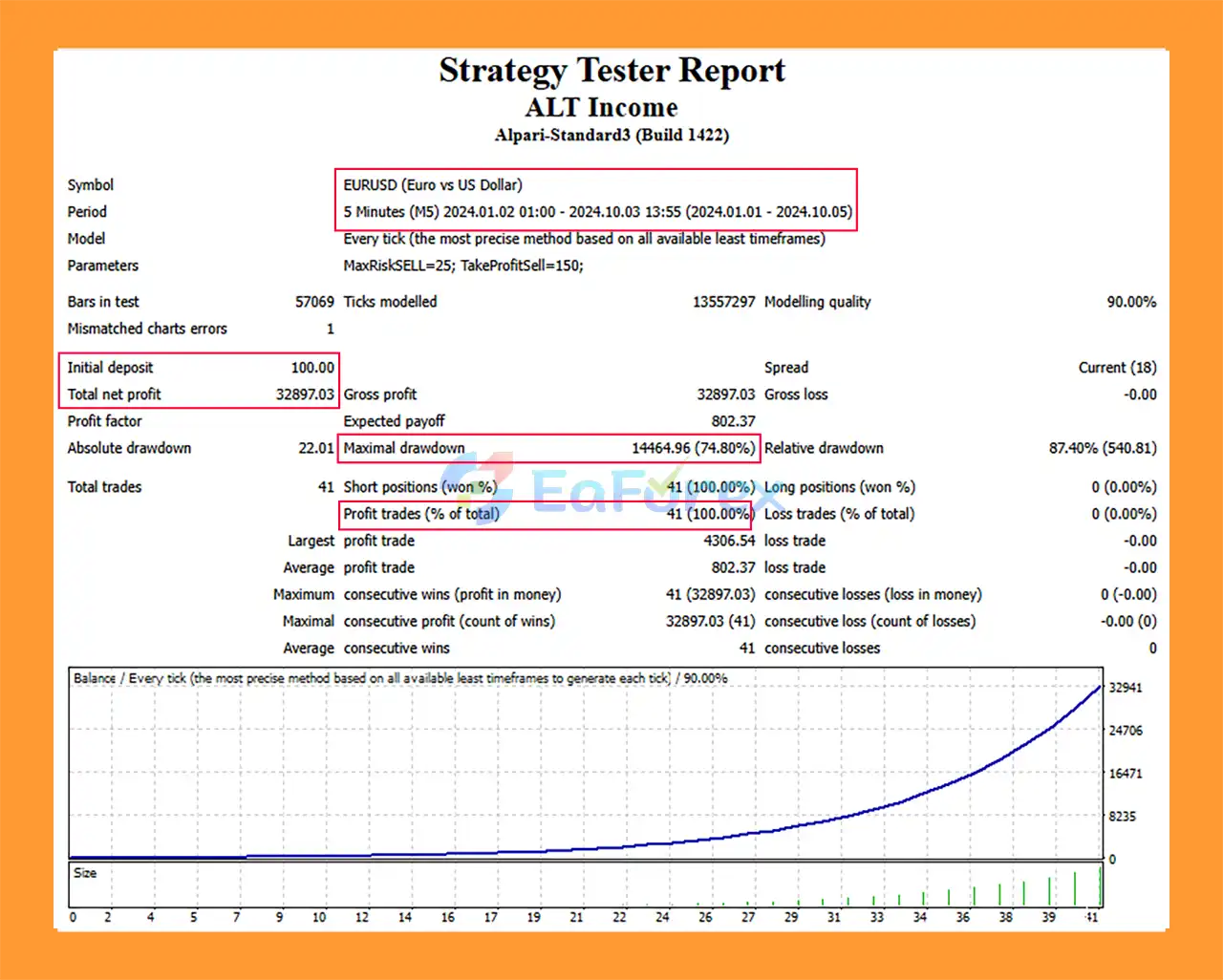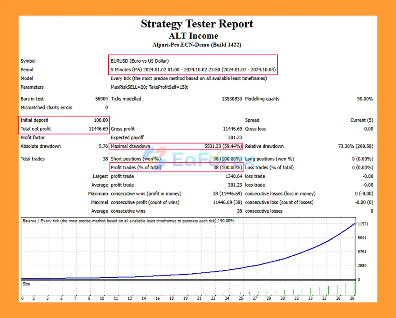 In summary, ALT Income EA MT4 is a fully automated, high-precision trading solution designed for EURUSD on the M5 timeframe. With customizable risk parameters, adjustable take-profit levels, and flexible leverage options, the EA enables traders to generate consistent income while maintaining controlled exposure. Its low minimum deposit requirement and beginner-friendly setup make it accessible for both new and experienced traders. Backtest results show exceptional profitability with high win rates and manageable drawdowns, highlighting its efficiency and reliability. With automated trade execution, risk-adjusted lot sizing, and optimized settings for the EURUSD pair, ALT Income EA MT4 offers a practical and dependable solution for steady, low-lot, automated trading.