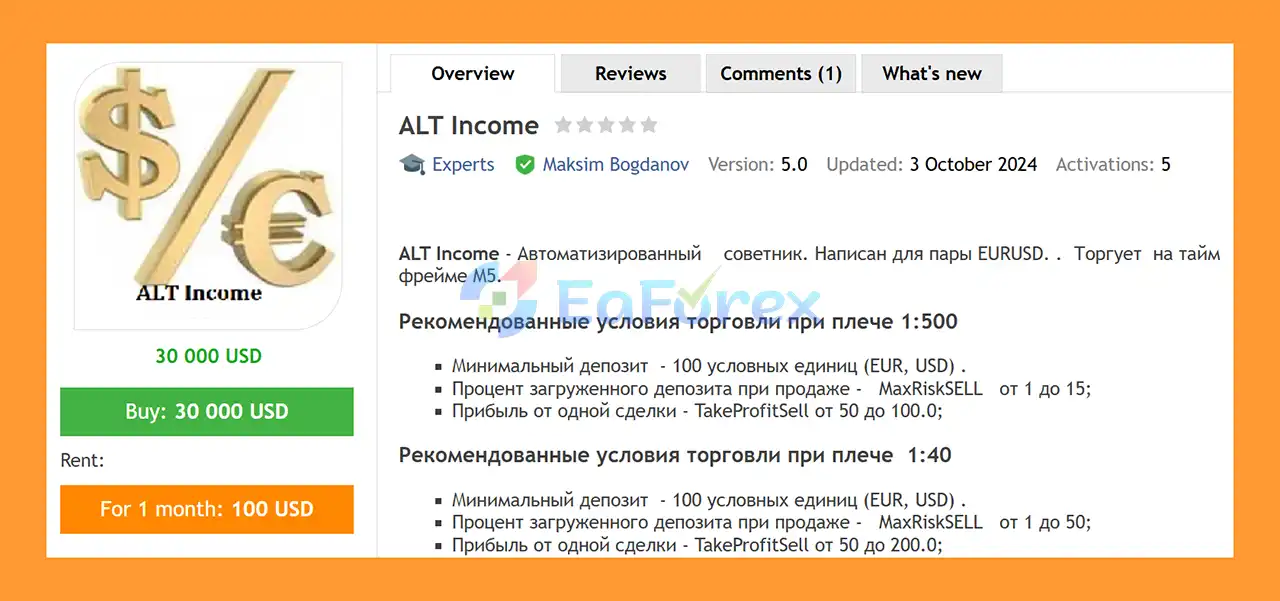 • Notable Products: ALT Income MT4, ALT EA MT4 and other advisors.