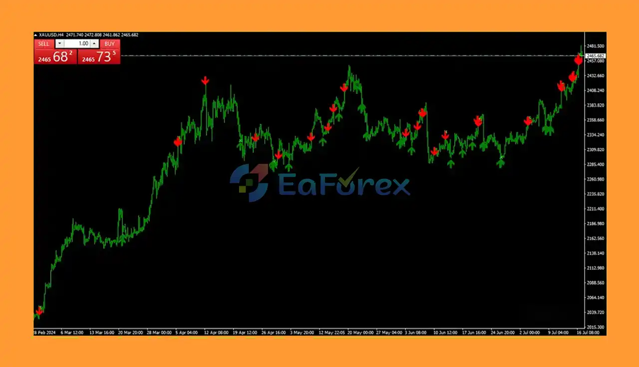 It analyzes market data in real time and displays green arrows for buy signals and red arrows for sell signals, helping traders make precise and confident trading decisions.