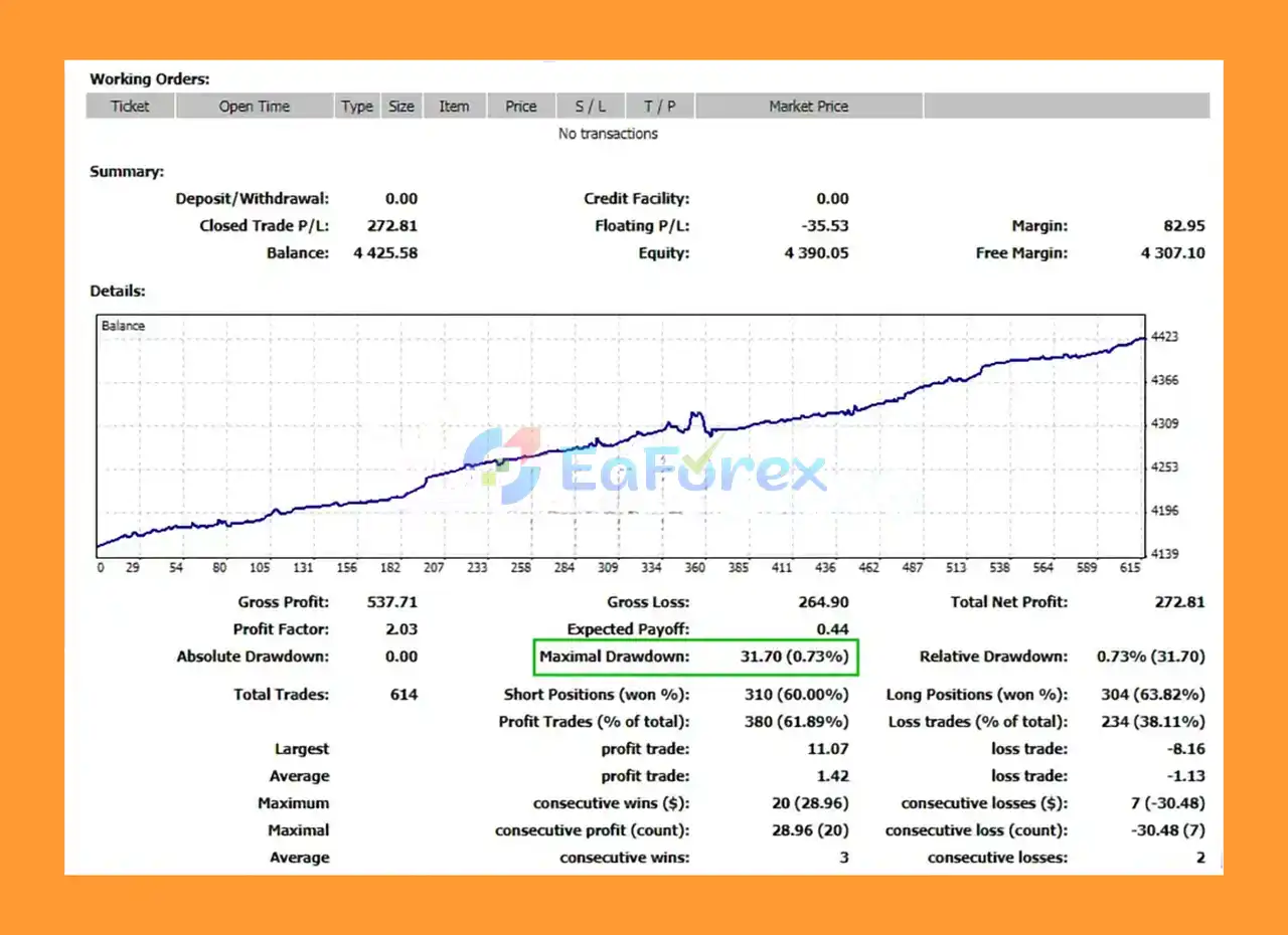 Yes. The EA’s performance is verified by Myfxbook, showing consistent profit growth, low drawdown (3.14%), and stable trading results based on live and backtest data.