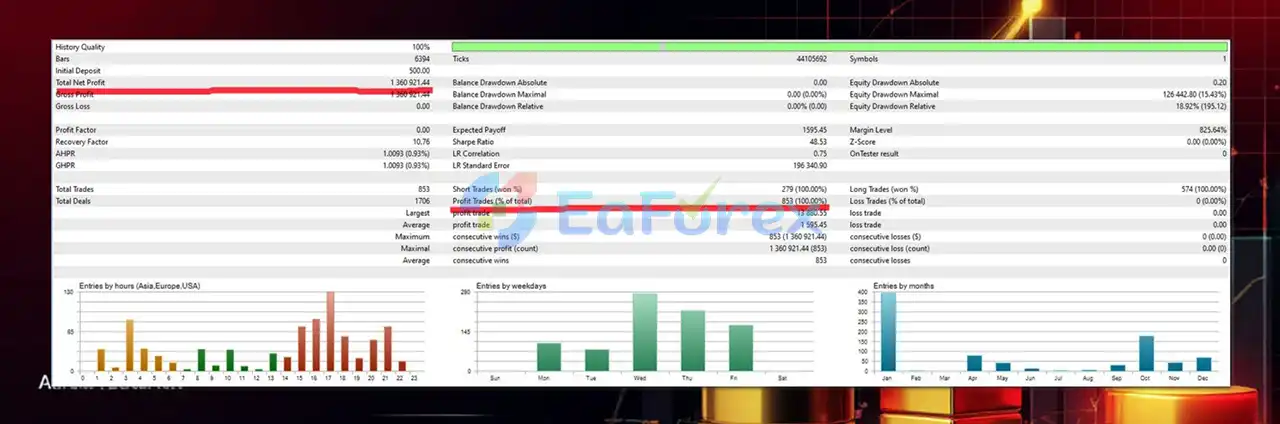 Aureum Advisor EA MT5 is an automated trading EA for the XAUUSD currency pair, offering risk control and stable returns with a 100% win rate.