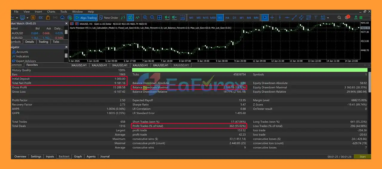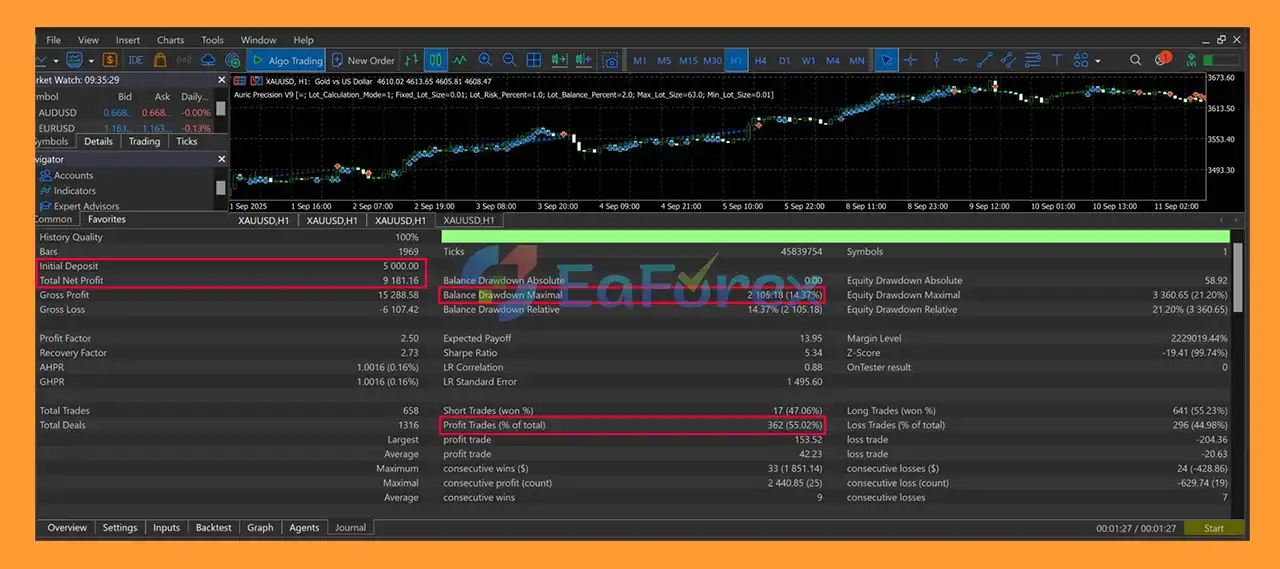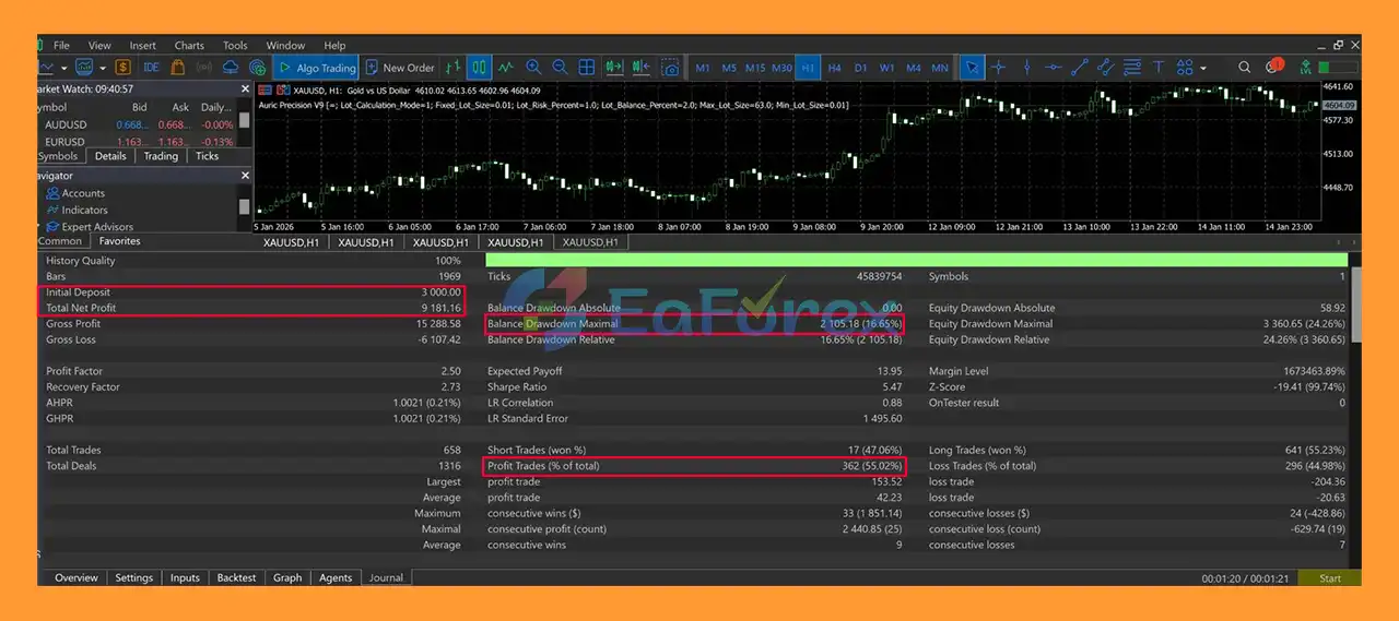 Auric Precision EA MT5 demonstrates strong risk-adjusted performance with: