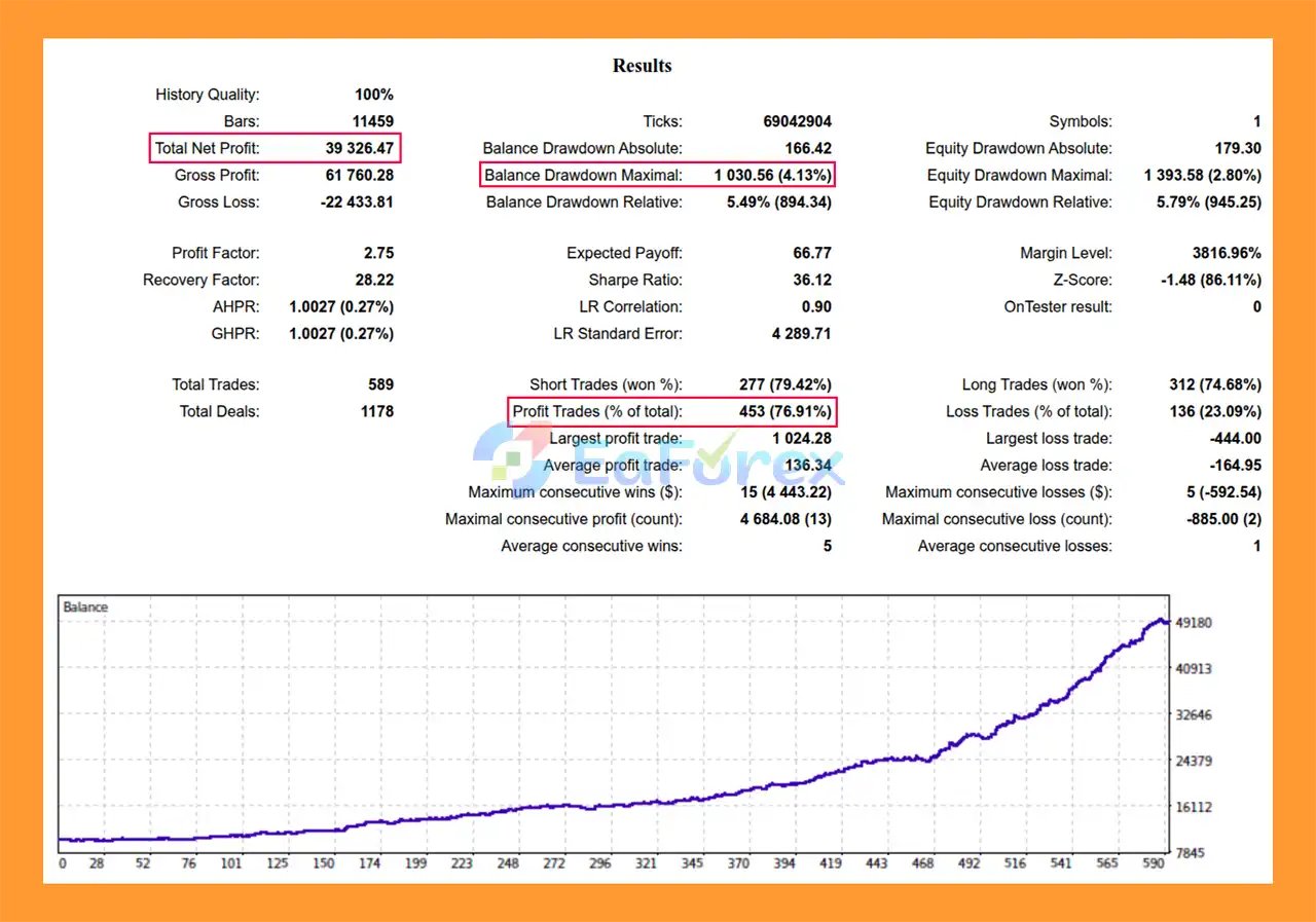 Based on the provided backtest results, the EA was tested with an initial deposit of $100. However, many traders prefer starting with a larger balance to improve stability, manage drawdowns more effectively, and allow more flexible risk settings.