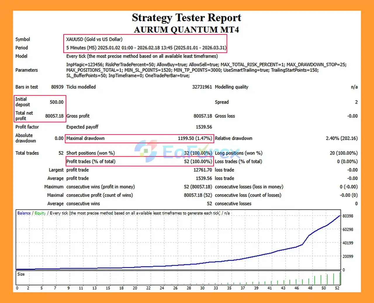 Aurum Quantum MT4 Backtest Results