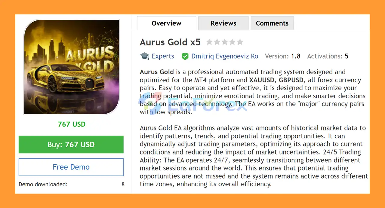 • Notable Products: Aurus Gold x5, Golden Harmony MT4, Golden Victry MT4, Infinity Gold Impulse MT4, Pharaoh Gold EA, Apex Gold MT4 and other advisors