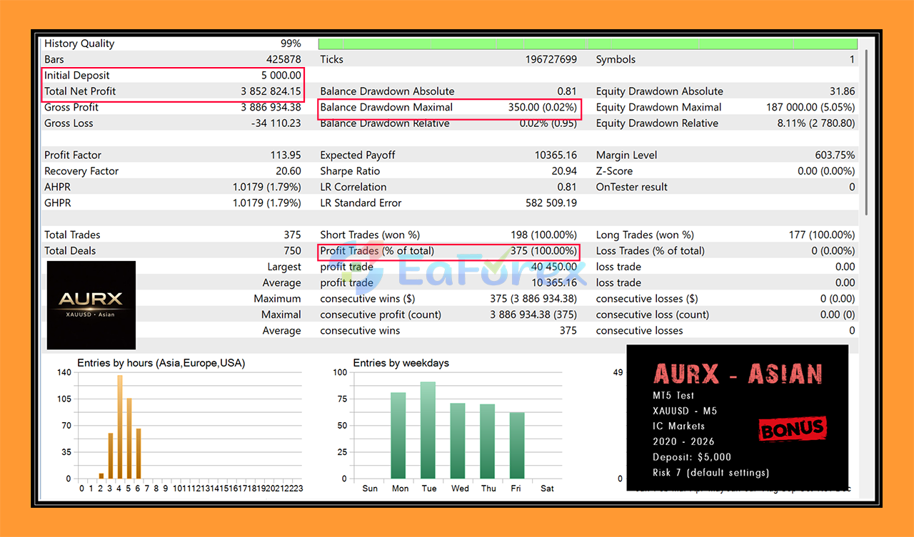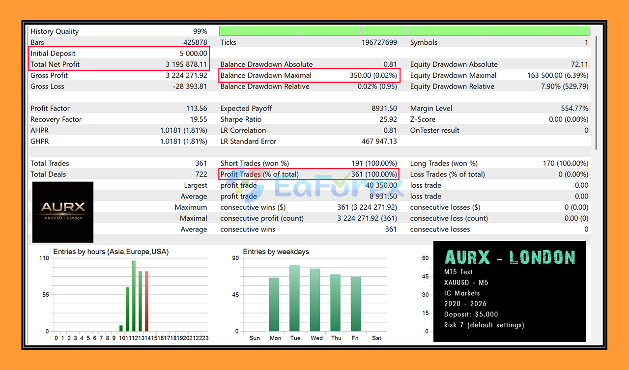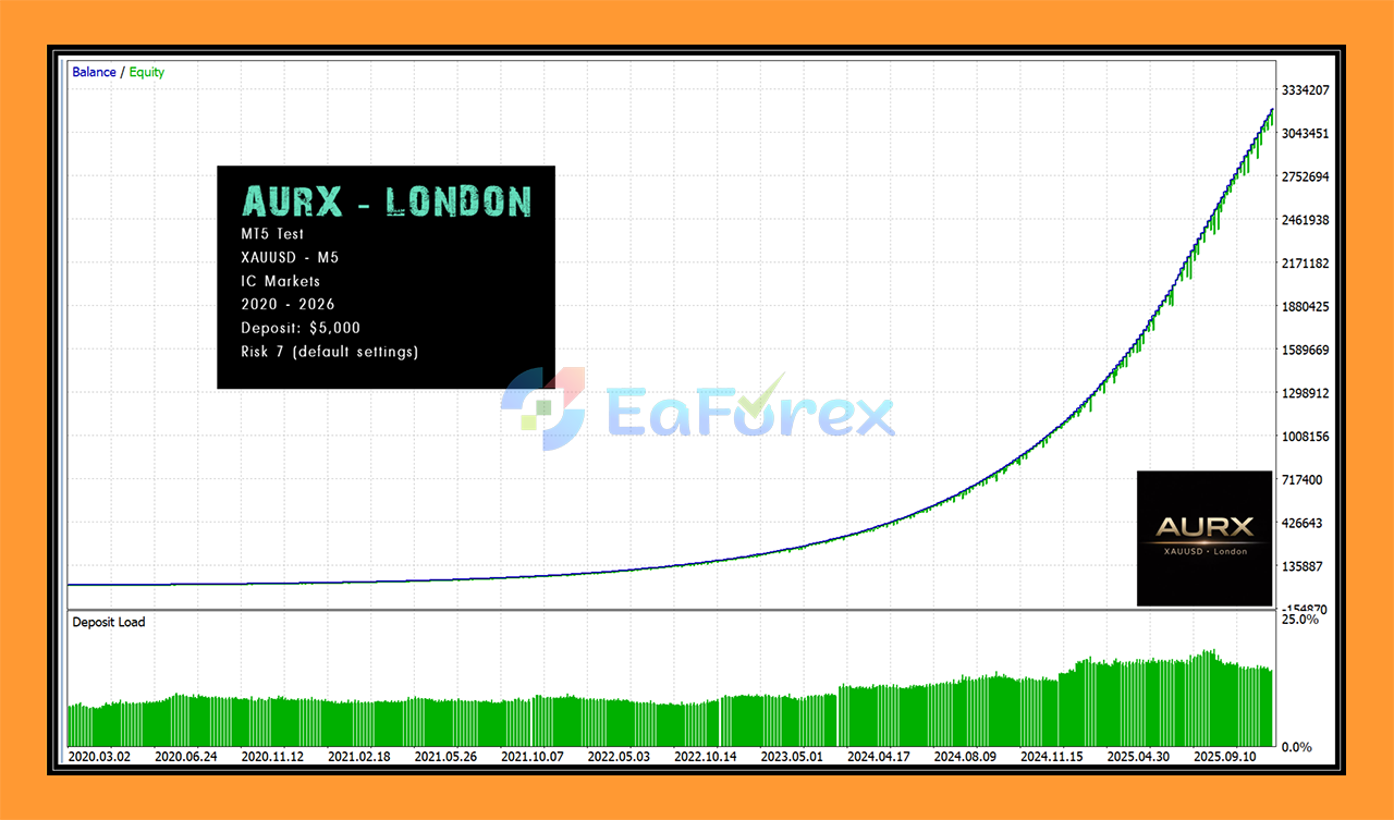 AURX MT5 is exclusively optimized for XAUUSD (Gold) on the M5 timeframe. It is not designed as a multi-pair EA and performs best when used exactly as intended.