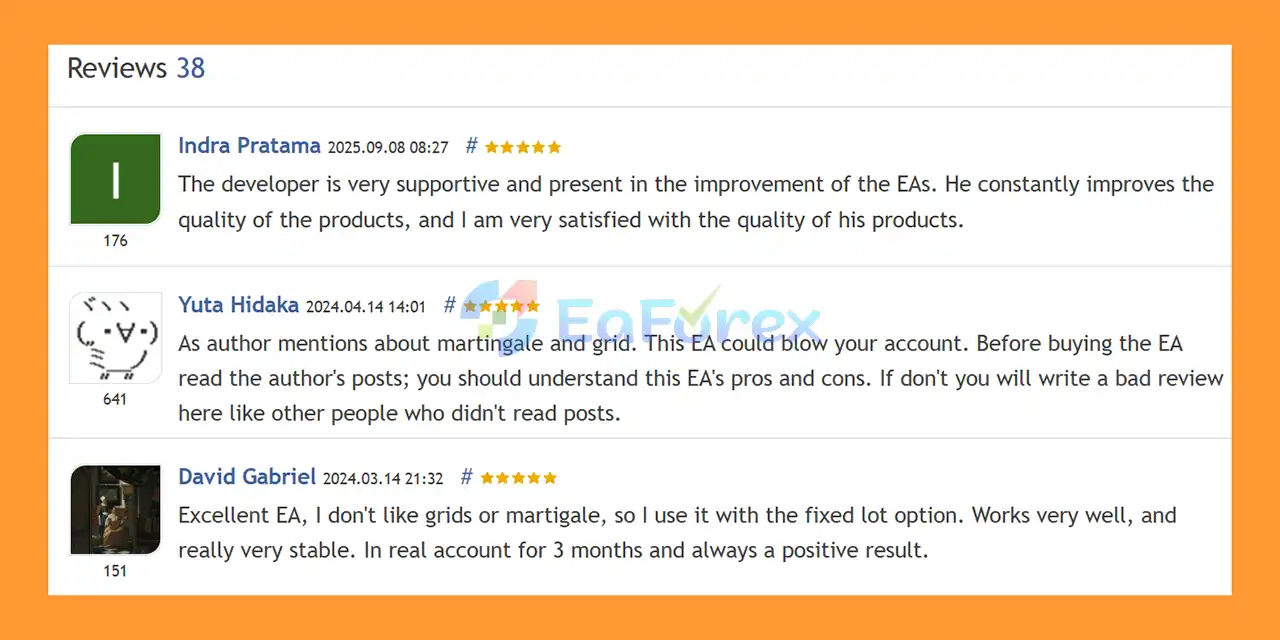🔺Aussie Victor MT5 is highly appreciated by the MQL5 community for bringing stable and reliable profits. Below are 5 star reviews from users: