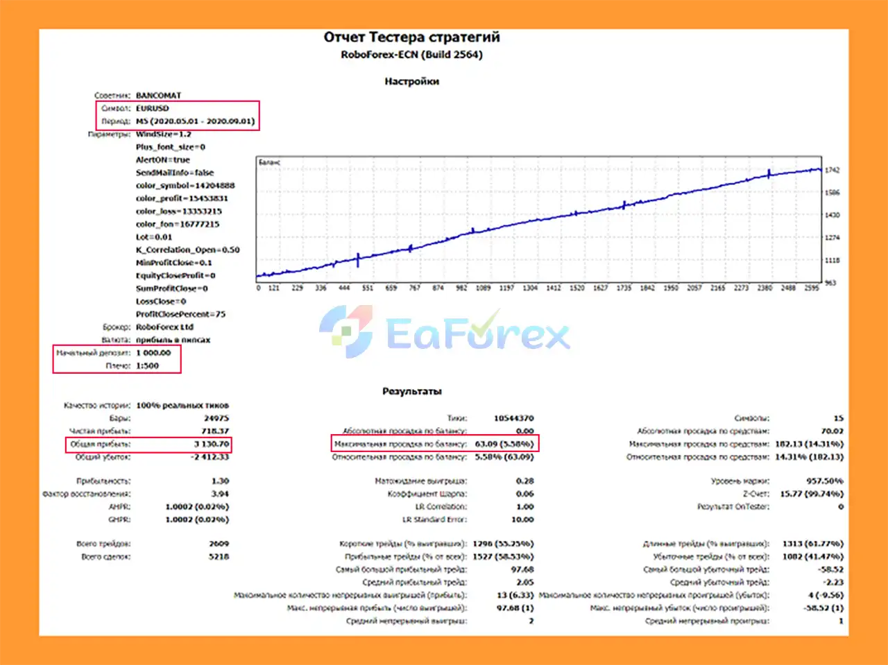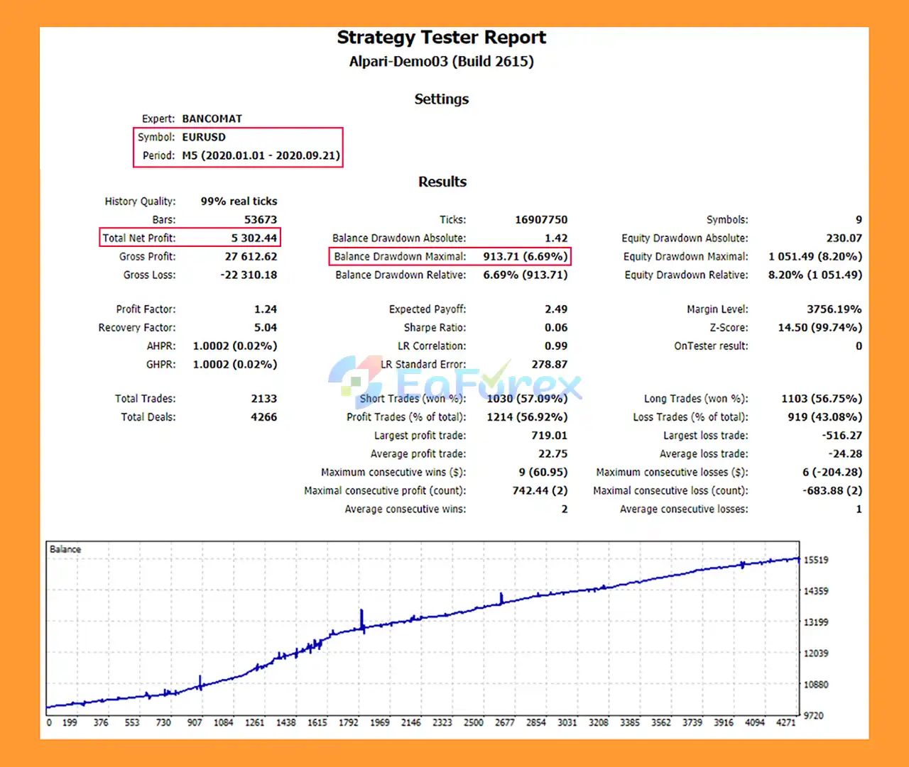 9. What are the backtest results of Bancomat EA MT5?