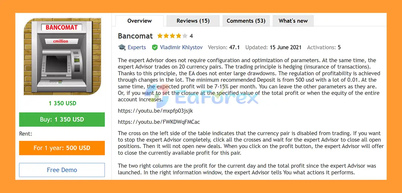 🔺Bancomat EA MT5 is highly appreciated by the MQL5 community for bringing stable and reliable profits. Below are 5 star reviews from users: