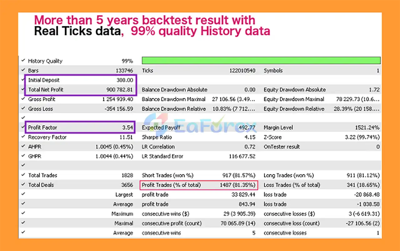• Proven Historical Testing: Backtested on real tick data for more than five years to validate performance.