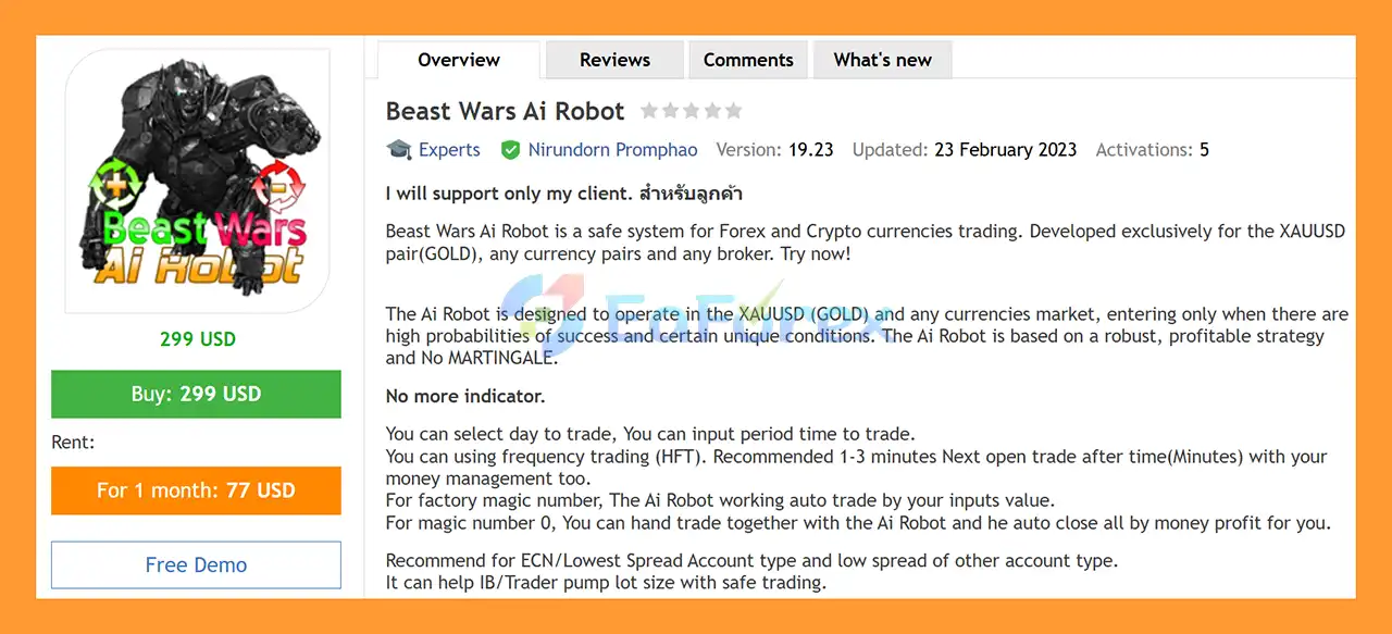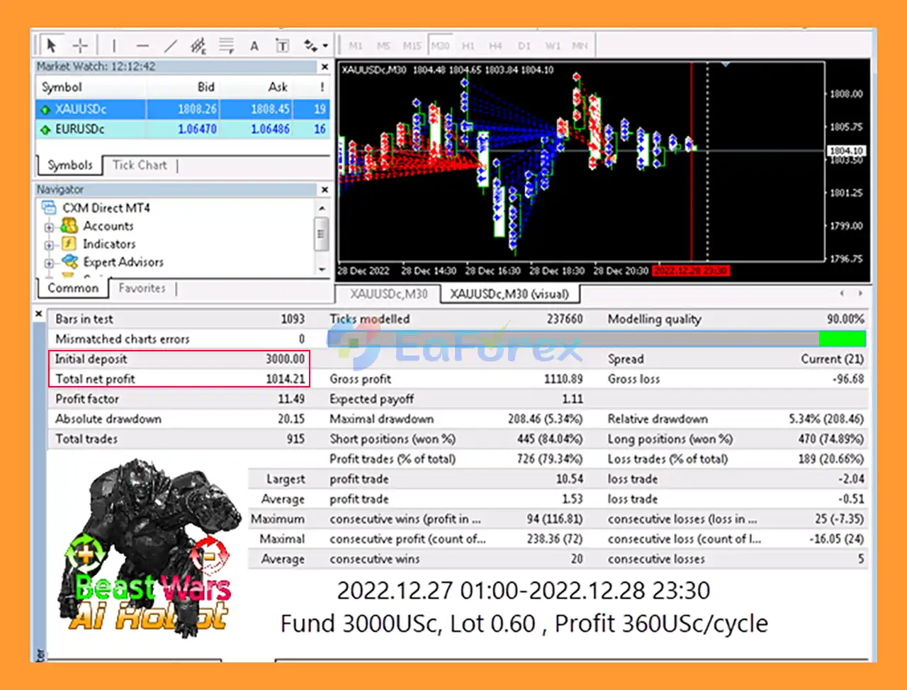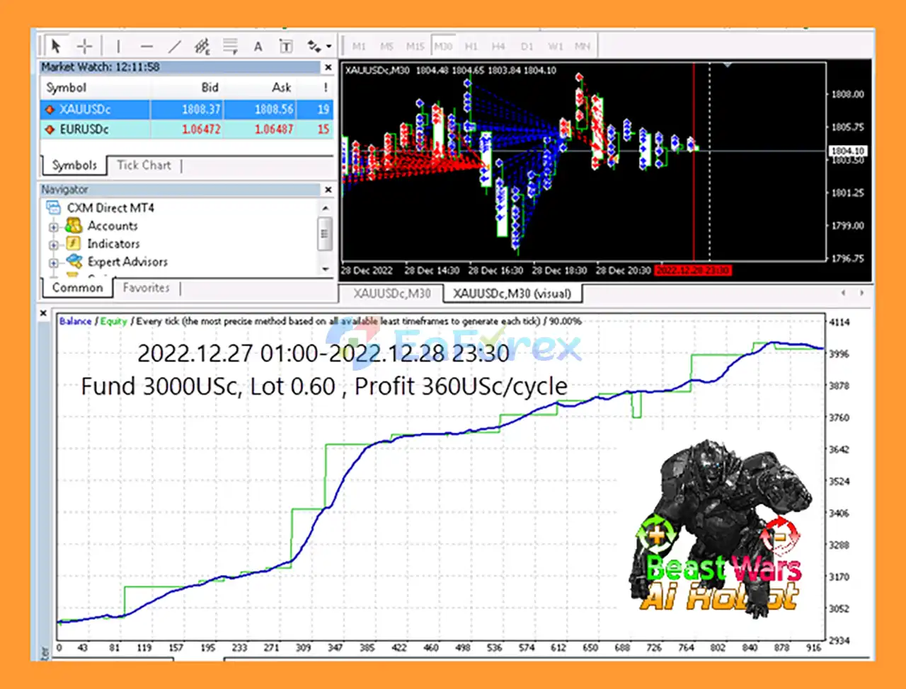 Beast Wars AI Robot EA MT4 is an automated trading EA for the XAUUSD currency pair and Forex market that delivers proven, consistent profits.