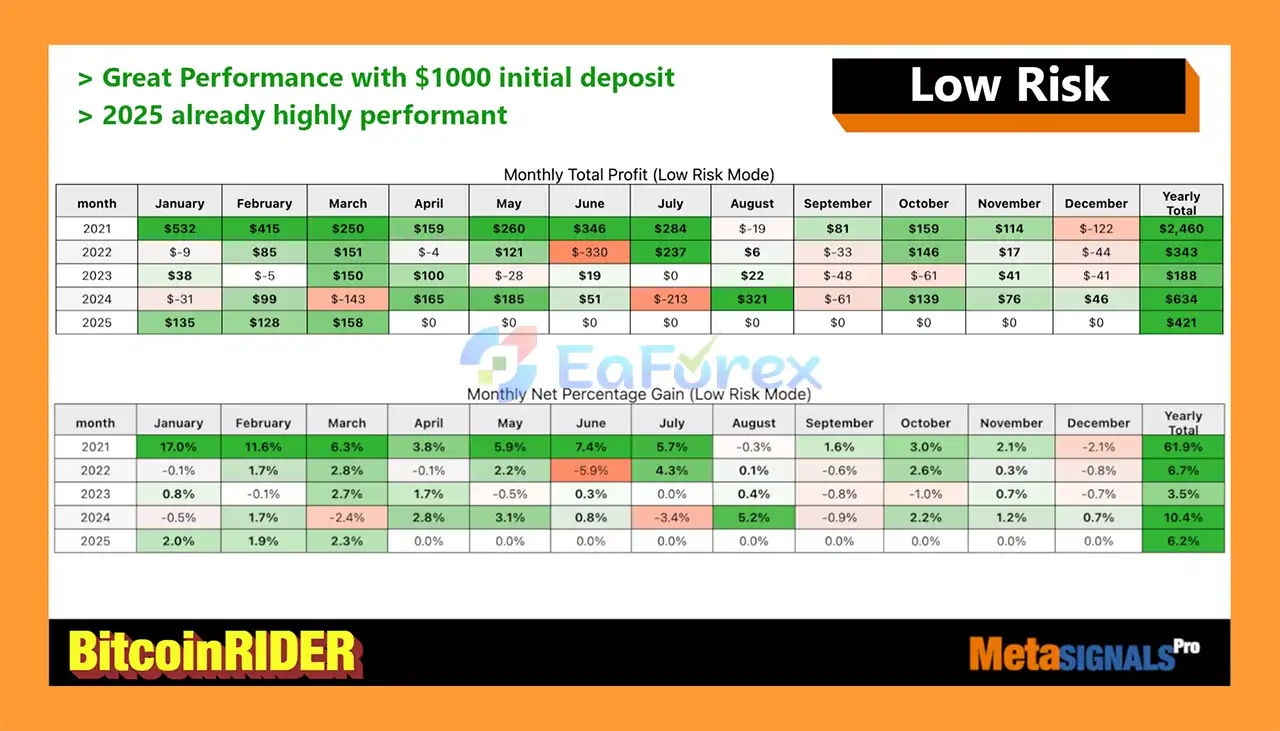 4. What are the performance results of Bitcoin Rider EA MT5?