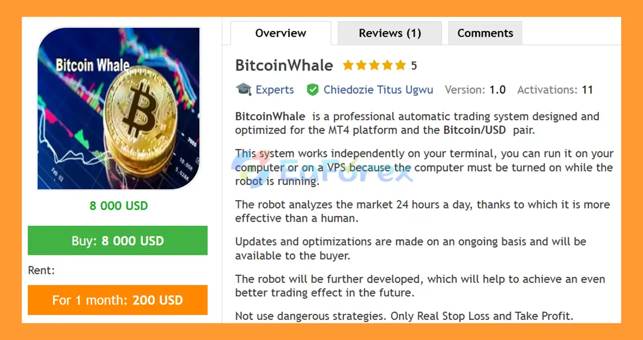 • Notable Products: BitcoinWhale EA MT4, BitcoinRobotTradingEA MT4, IndiceWizard EA MT4, Forexking EA MT4, Forex Vampire EA MT4, Ethereum Finisher EA MT4, RippleBullRunWizard EA MT4, GoldScalper EA MT4, IndexPro EA MT4, ForexMagician EA MT4 and other advisors.