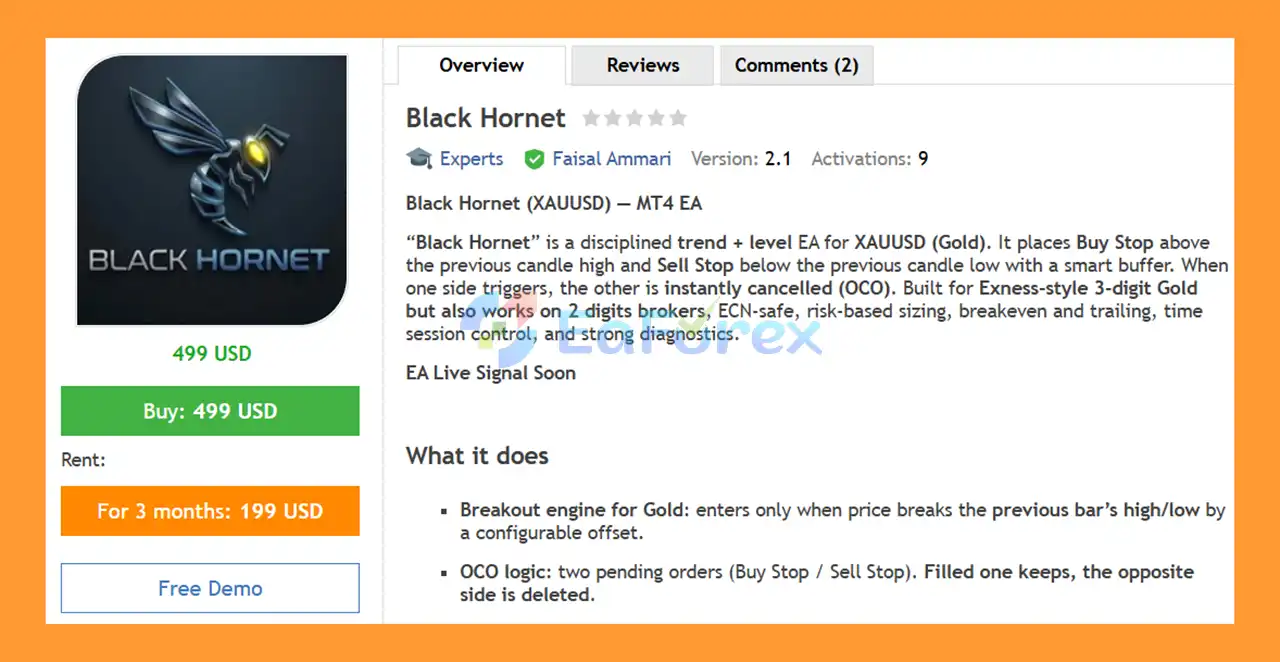 • Flagship Product: Black Hornet EA MT4 is rated as the best performing product of the year.