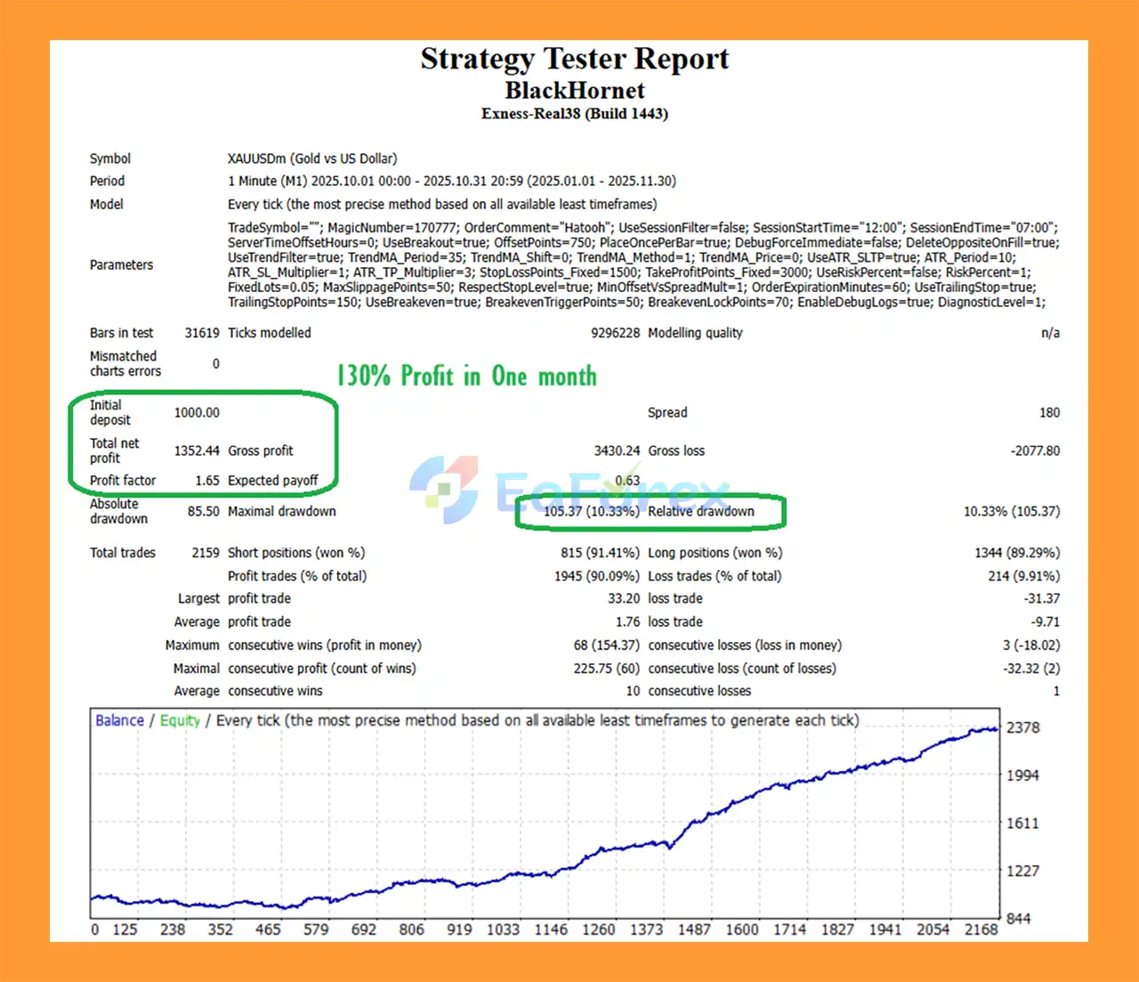 Black Hornet EA MT4 Backtest Results