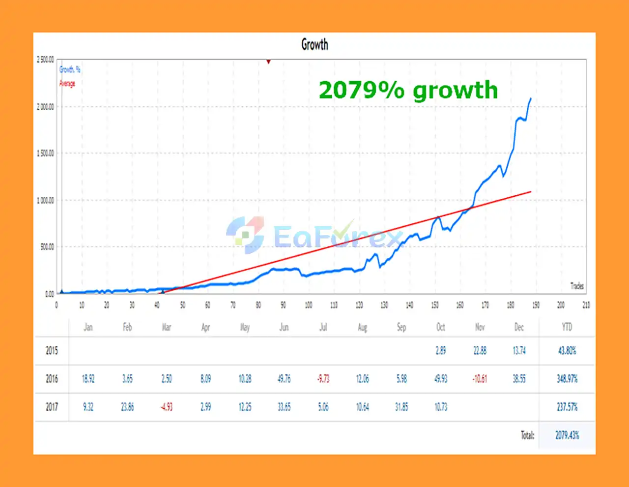 ➡️In previous years (2015–2017), Bober Real MT5 achieved an impressive +2079% total growth, proving its long-term profitability and robust algorithmic structure.