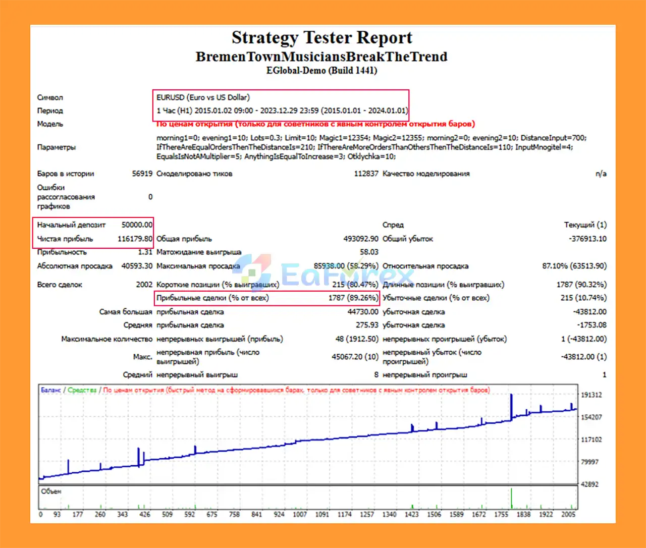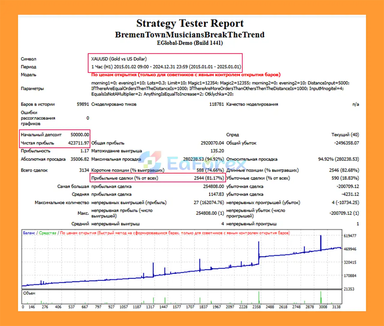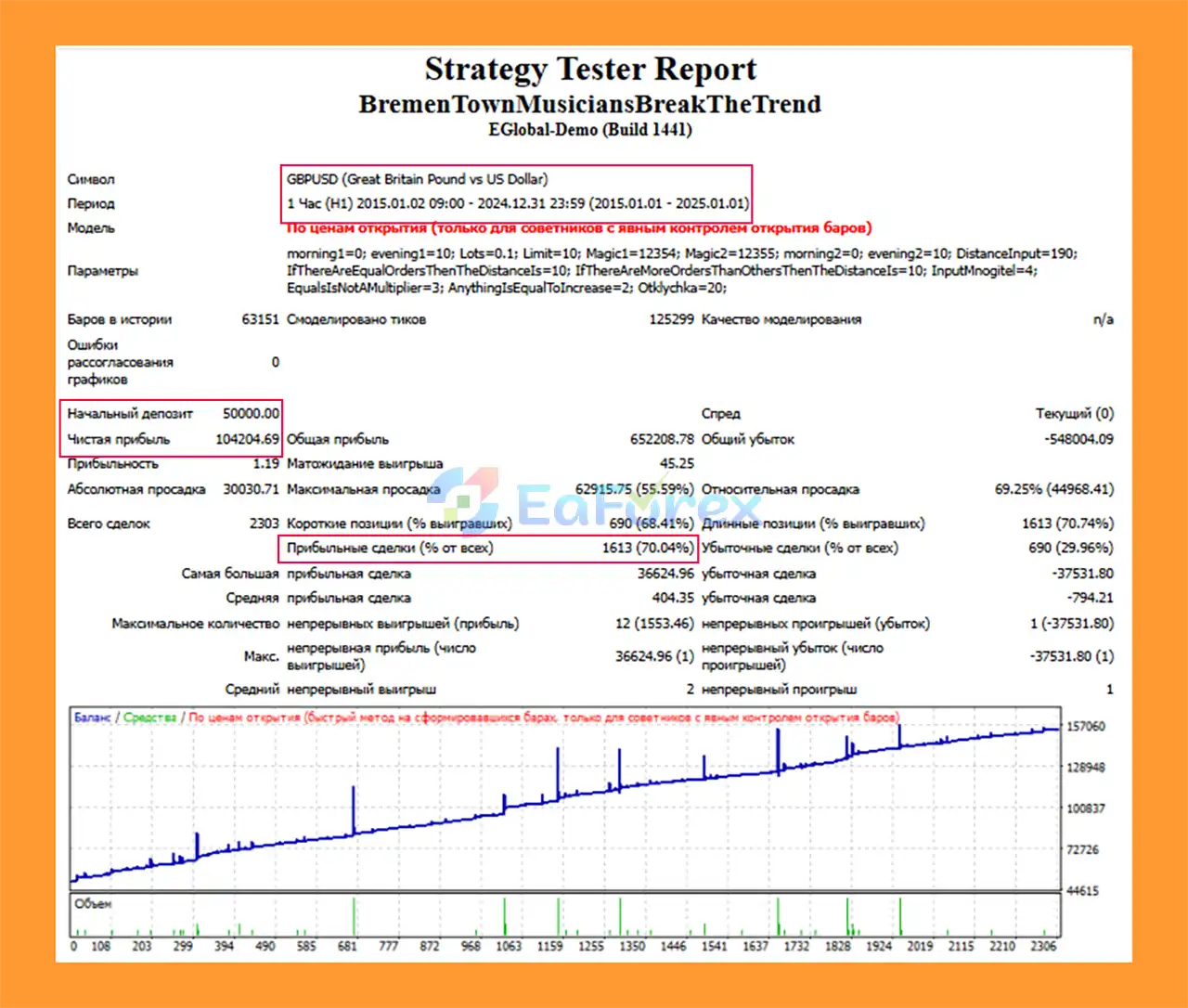 Bremen Town Musicians Break The Trend MT4 Backtest Results
