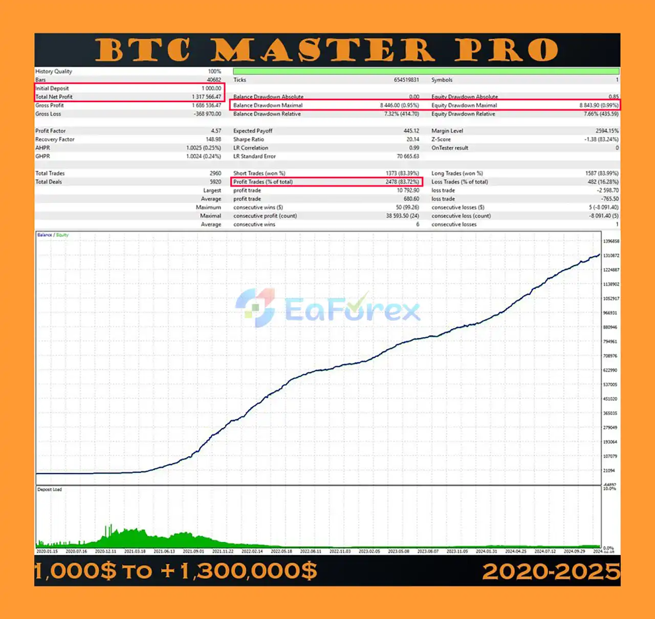 According to backtesting results, BTC Master Pro MT5 achieved: