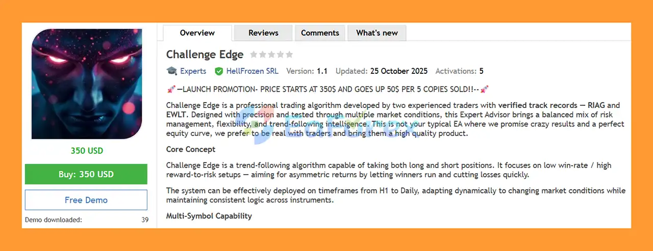 • Notable Products: Challenge Edge MT5 and other advisors.