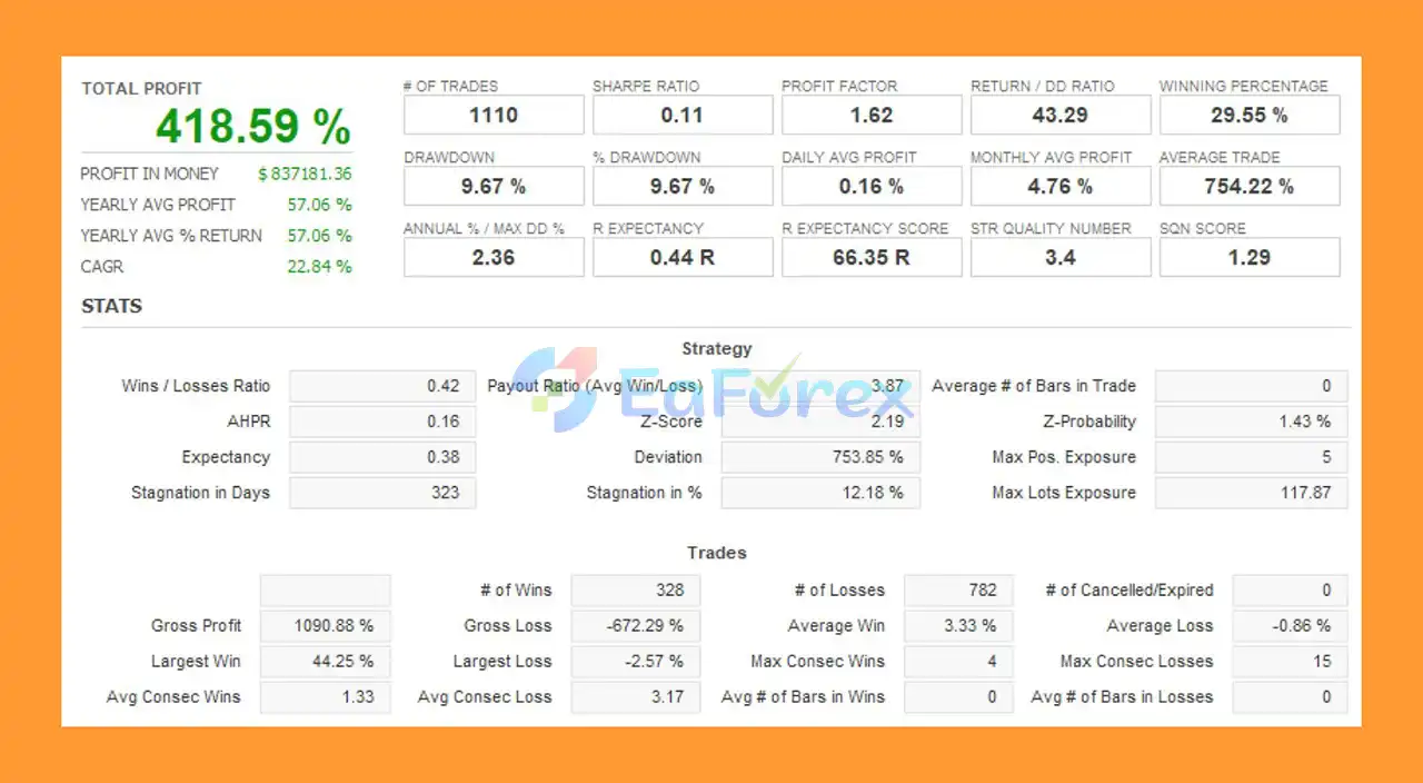 With a $200,000 initial deposit, Challenge Edge achieved $837,181 profit, a 29.55% win rate, and a maximum drawdown of just 6.44%, proving its risk-controlled and consistent performance.