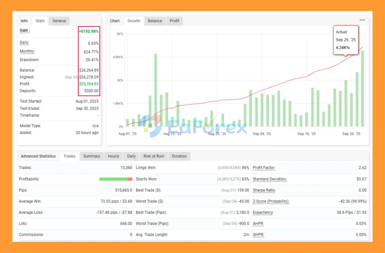 The EA uses a gold-specific high-frequency trading strategy, focusing on structured, rule-based execution rather than discretionary trading. It captures small, frequent opportunities created by gold’s short-term volatility.