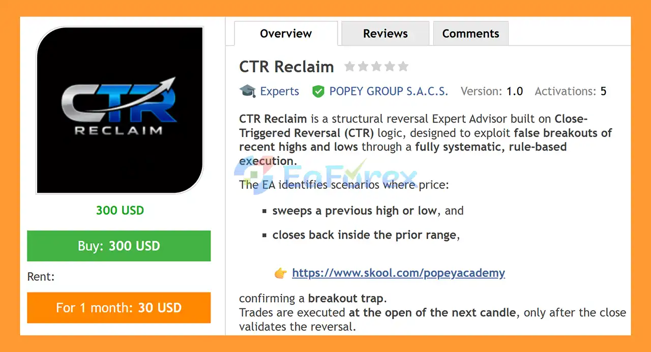 Be the first to review “CTR Reclaim EA MT5 (Official version) | GroupBuy”
