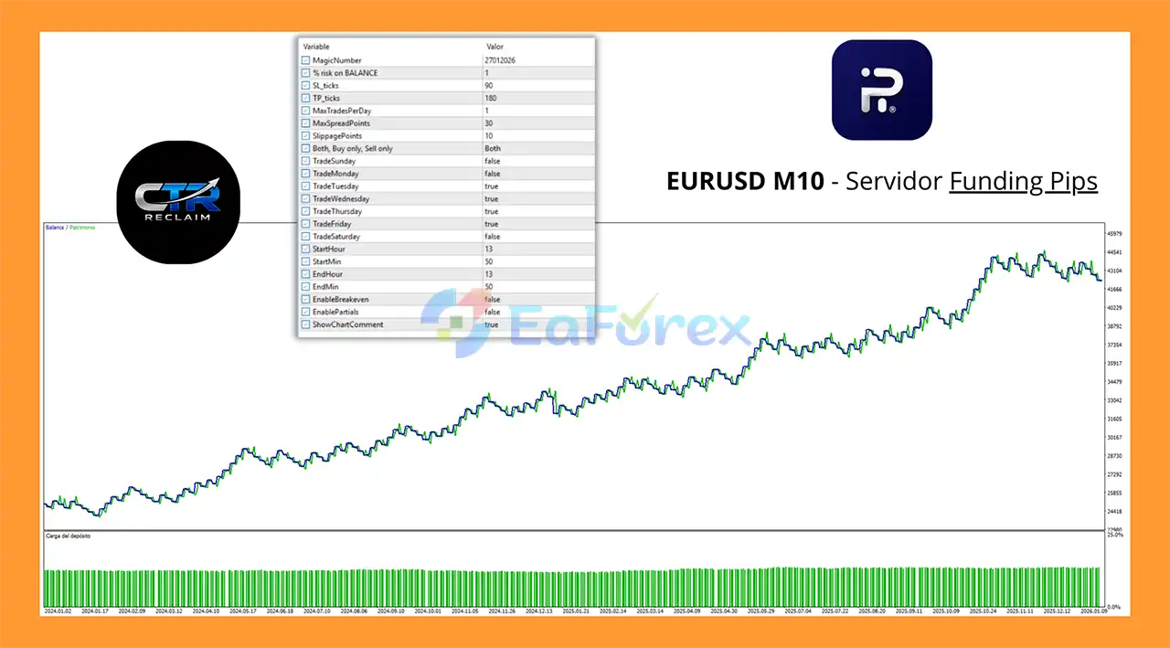 CTR Reclaim EA MT5 is designed to trade markets where false breakouts frequently occur, especially around key highs and lows. Users can configure sessions, days, and trade direction to match their preferred instruments and trading conditions.