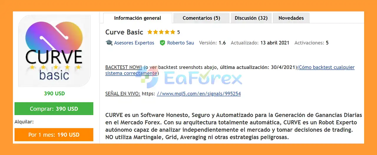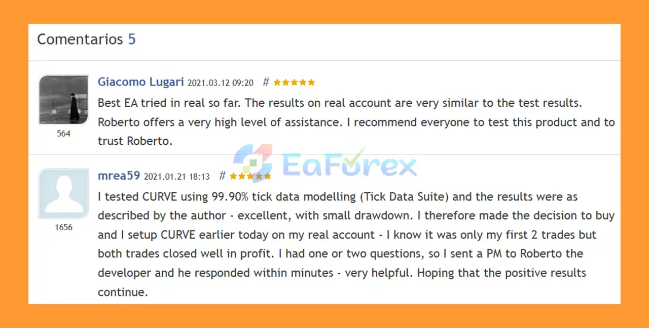 🔺Curve Basic EA is highly appreciated by the MQL5 community for bringing stable and reliable profits. Below are 5 star reviews from users: