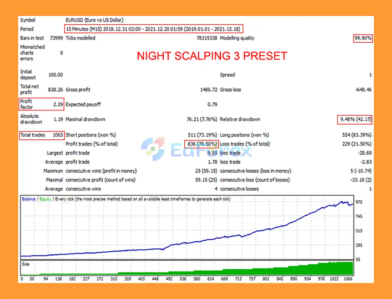 • Preset Trading Strategies: Includes optimized setups for night scalping, breakout trading, and mean reversion.