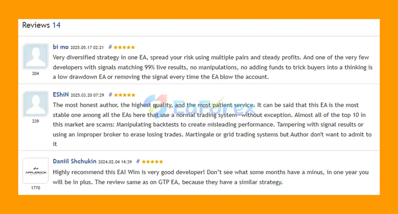 🔺Daytrade Pro Algo MT5 is highly appreciated by the MQL5 community for bringing stable and reliable profits. Below are 5 star reviews from users: