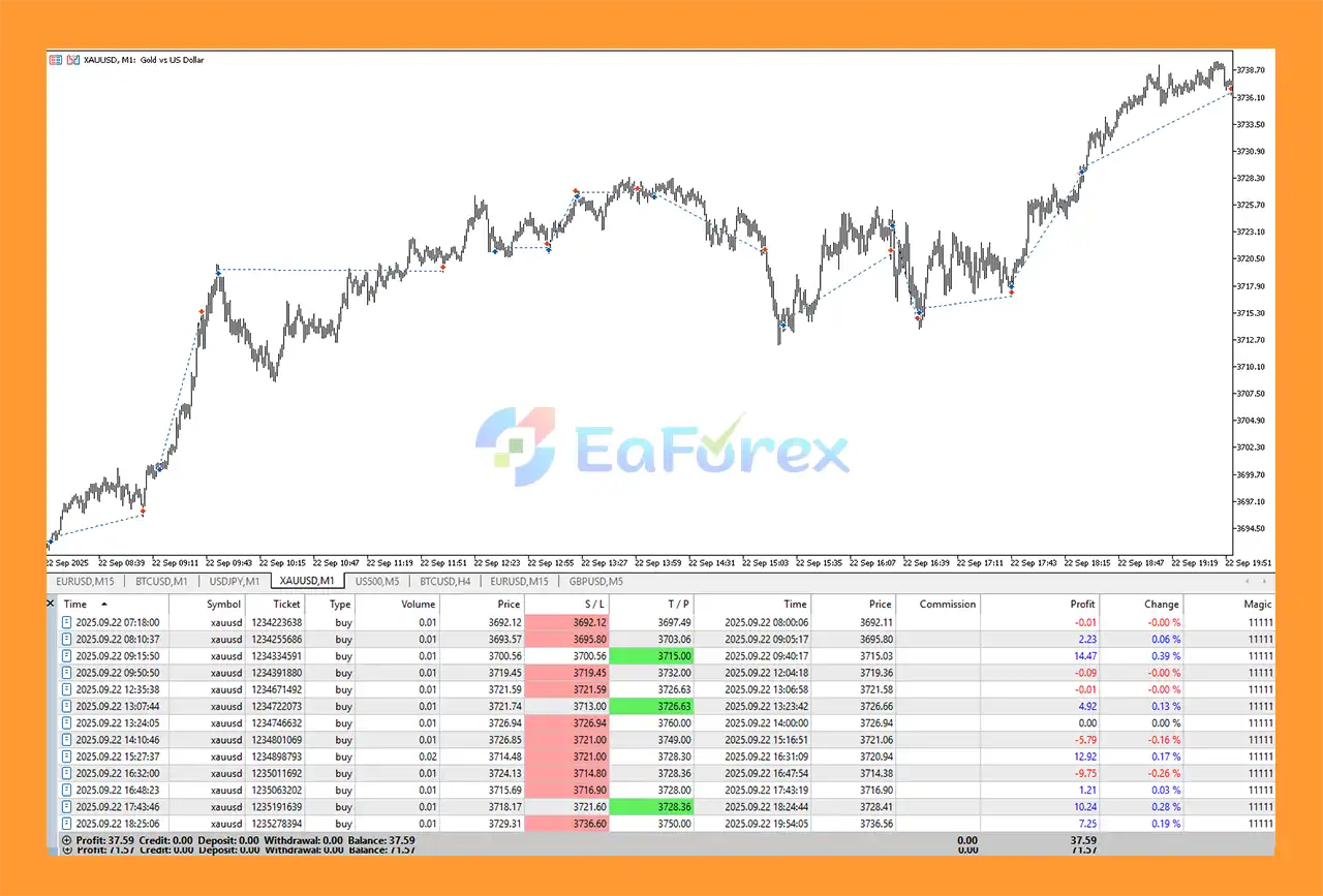 • Fully Customizable Settings – Define all parameters easily, including risk level, favorite pairs, trading hours, and profit targets.