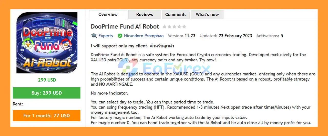 DooPrime Fund AI Robot EA MT4 is an automated trading EA for XAUUSD and other currency pairs. Its profit performance has been verified by myfxbook.