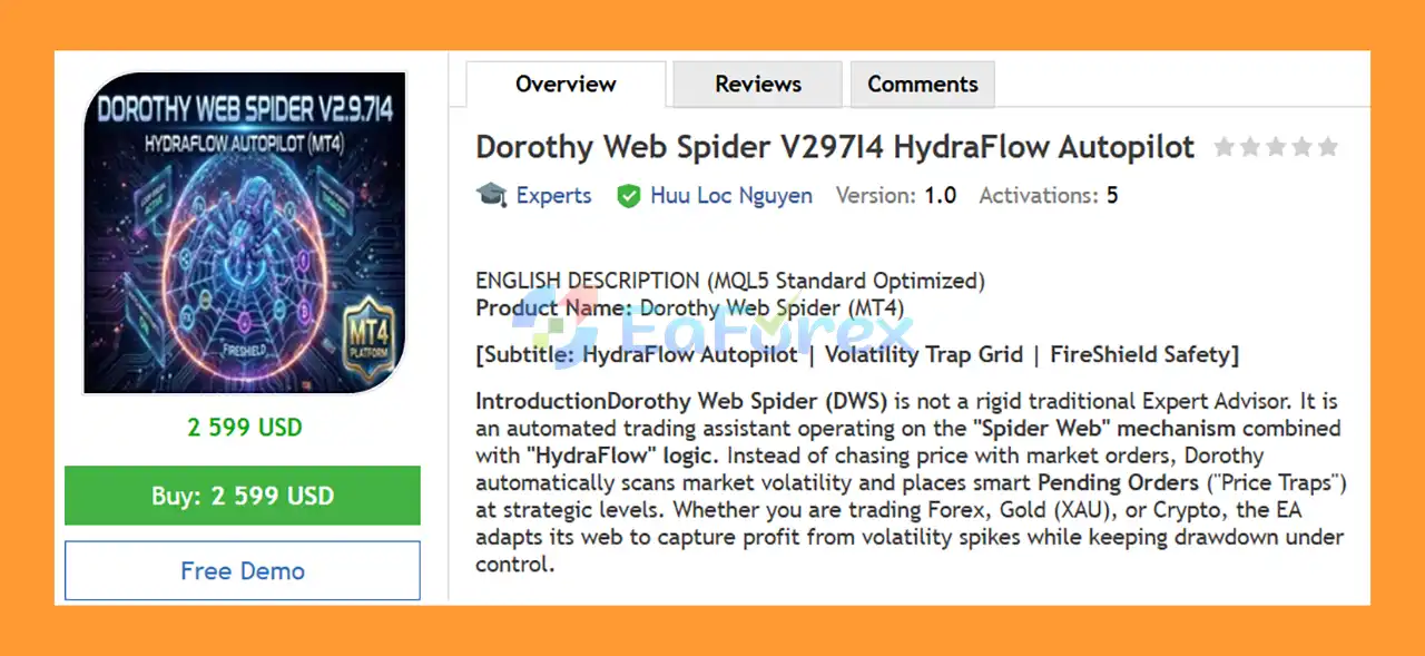 1. What is Dorothy Web Spider V297I4 HydraFlow Autopilot MT4?