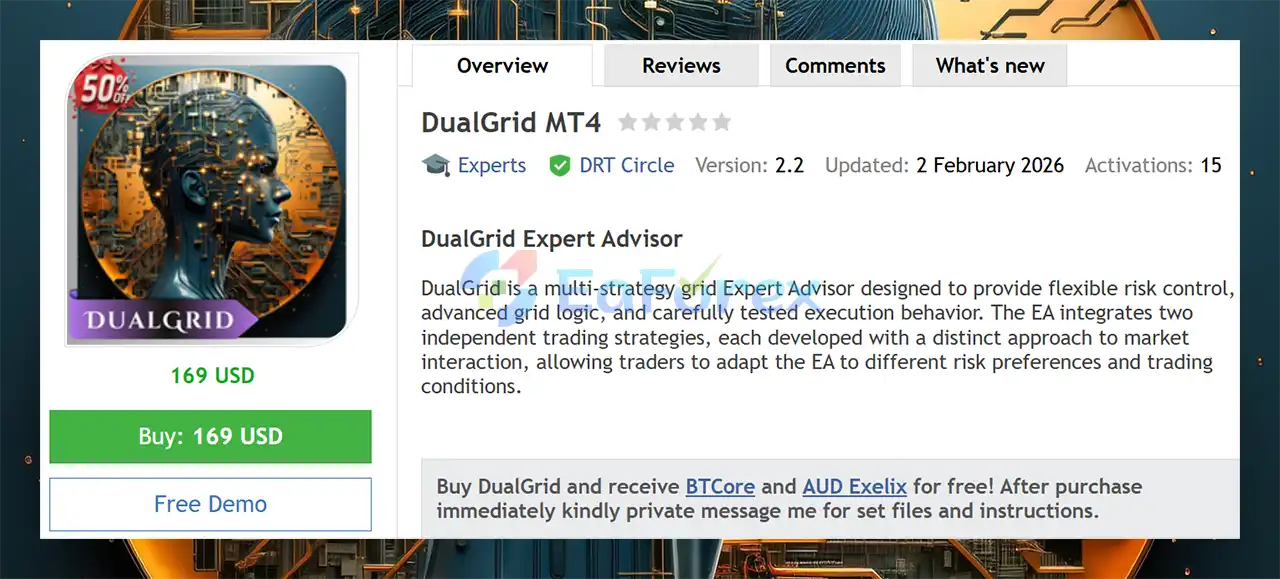 In summary, DualGrid MT4 is a flexible and risk-aware grid trading Expert Advisor designed for Gold traders who value structure and control. With its dual independent grid strategies, configurable martingale options, and disciplined execution logic, the EA adapts well to different market conditions and trading styles. Supported by strong backtest performance, low drawdown, and professional risk management features, DualGrid MT4 is a solid choice for traders seeking a customizable and well-balanced MT4 grid trading solution.