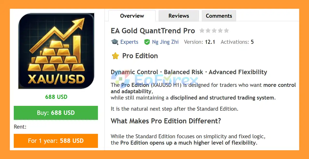 - Notable Products: EA Gold QuantTrend Pro MT4, Gold Quant Trend EA, EA Standard Gold Quant Trend, EA Gold QuantTrend Pro and other advisors.